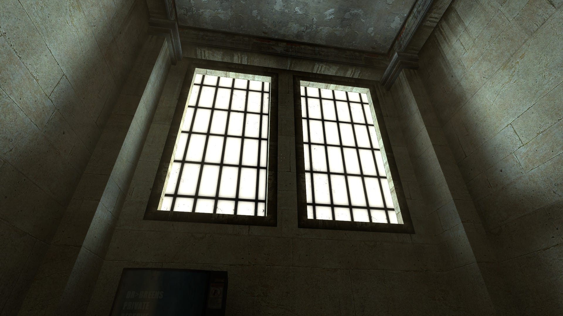 Interestingly, however, City 17’s impressive skybox is introduced gradually. Players are brought into the city via train – a very effective and familiar way of entering any new town, but also a direct reference to the introduction of Half-Life 1 – making the sky difficult to directly observe from within. Its colours are reflected in the palette choices, but to directly see the skybox players have to put in the effort and try to look from the train’s window before entering the main station; only to see a thin ribbon of sky. Following the train ride, audiences have to wait even longer before being exposed to open air. The enclosed spaces of the station feature nothing but dull windows, only allowing the quality of the world’s light to be sensed and the skybox itself to be foreshadowed.