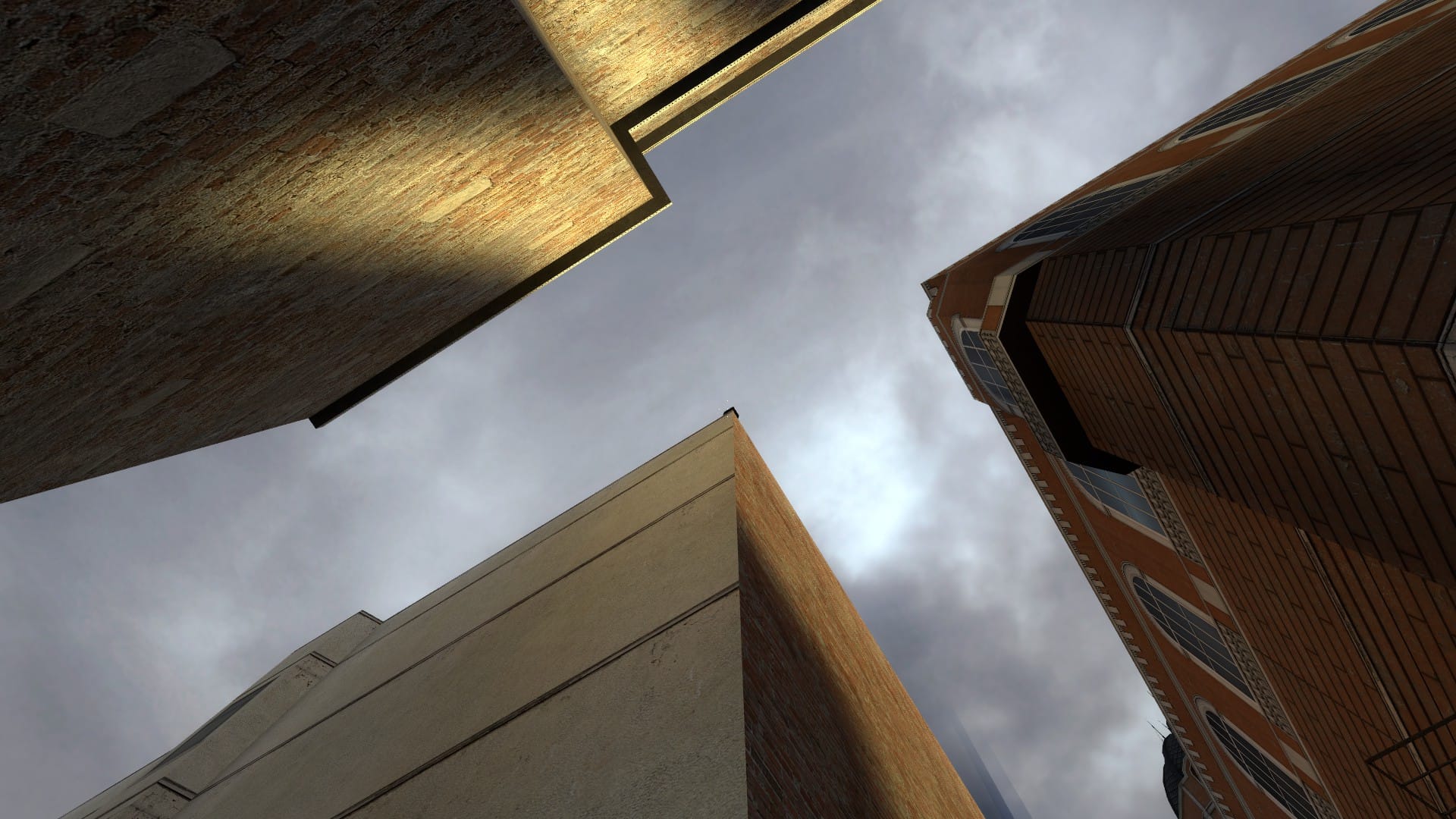 Surrounded by Bulgarian-inspired courtyards, central European grids, and the layered architectural diversity required to imply an actual historical past, looms the Citadel tower. It is a powerful symbol of alien oppression, and a landmark dominating the urban tissue, rising above the gray, industrial skyline. This omnipresent alien-brutalist structure is the centerpiece of the skybox, always there to oppress players and remind them they were never far from the Combine’s reach. As with all successful landmarks, the Citadel benefits from the negative space surrounding it. It stands out against the sky drawing the eye, constantly reminding the audience of the world’s scale, as well as their ultimate goal and enemy.